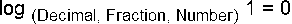 = 0, log (Decimal, Fraction, Number) 1 = 0 ), i.e. very useful for