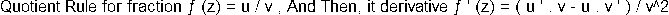 Quotient Rule for fraction ƒ (z) = u ÷ v